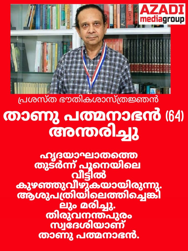 ലോകപ്രശസ്ത മലയാളി ഭൗതികശാസ്ത്രജ്ഞന് പ്രൊഫ. താണു പത്മനാഭന് അന്തരിച്ചു