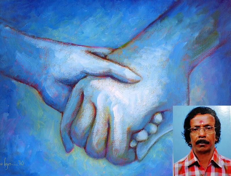 ‘===================== നീലവ്യോമമായെങ്ങും നീ വിളങ്ങുമ്പോൾ ഞാനാം നീർമണിമുത്തിന്നുള്ളിൽ നിന്നെ ഞാനൊളിപ്പി ക്കും. സാഗരസംഗീതമായ് നീയവതരിക്കുമ്പോൾ സാമമായ് ഹൃദന്തമാം ശംഖിൽ ഞാൻ നിറച്ചീടും. ചണ്ഡമാം കൊടുങ്കാറ്റായ് നീയണഞ്ഞാലോ മുളം തണ്ടിലൂടതിനെ ഞാൻ കളഗീതമായ് മാറ്റും. ഘോരമാം താമസ്സിന്റെ ജട നീയഴിച്ചെന്നാൽ ചാരുവാം ചന്ദ്രക്കല- യായി ഞാൻ പറ്റിക്കൂടും. ദാവാഗ്നിനാളങ്ങളായ് നീയുണർന്നാലോവാത്മ- ദാഹത്തിന്നരണിയിൽ നിന്നെ ഞാൻ ലയിപ്പിക്കും പ്രളയപയോധിയായ് വന്നാകിലരയാലി- ന്നിലയായ് നിൻമേനിയെ തൊട്ടുകൊണ്ടൊഴുകും ഞാൻ. ===================== കിടങ്ങറ ശ്രീവത്സൻ,