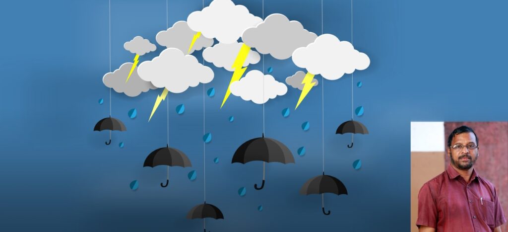 വാനമാം ഘോരകാന്താരത്തിലൂടെ കൊമ്പനാംകർക്കടം വീറോടെപായുന്നു ചിന്നംവിളിനാലുദിക്കും മുഴങ്ങുന്നു വാരുറ്റമസ്തകം കുത്തിവീണീടുന്നു തിരിയാനിടയില്ല വന്യകുഞ്ജരമേ മരണക്കുണ്ടിലേക്കു നീയെന്നെ,യാഴ്ത്തുന്നു മനുഷ്യരോദനത്തിൽ നീയാർത്തുചിരിക്കുന്നു നിരങ്കുശം ശരമാരി നിൻശരവ്യം പുല്ലുമേഞ്ഞതെങ്കിലുമെൻ്റെ വാസഗൃഹം പുല്ലുപോൽ വലിച്ചെറിഞ്ഞു നീ മദിക്കുന്നു വപ്രി,യിതല്ലാതെന്തു വേണമെനിക്കിനി ശിരസ്സിന്നുമേലെ തരസാ ആടുന്നൊരു അസി- യീജീവിതം പിടഞ്ഞുവീണിതാ മണ്ണിൽ കുഴിയാനപോൽ മനുഷ്യജന്മങ്ങൾ തുമ്പി നീട്ടിച്ചാടിപ്പിടിച്ചു മിന്നൽവേഗത്തിലെ- ടുത്തെറിയുന്നു നീ കോൾമയിർകൊള്ളുന്നു നീമൃഗമേ, രാക്ഷ – സാകാരംപൂണ്ടു കലിതുള്ളി,യീമണ്ണിനെ കോരിക്കുടിച്ചൂറ്റം – കൊള്ളുന്നു.