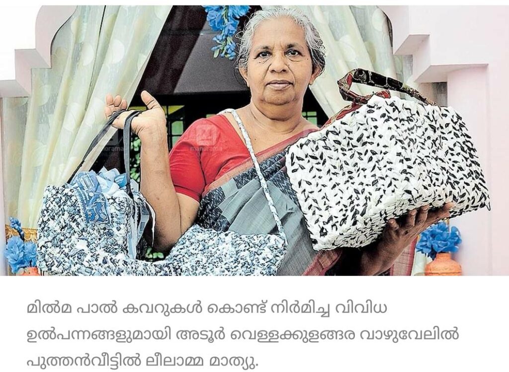 ചായക്കടക്കാരും വീട്ടുകാരും വലിച്ചെറിയുന്ന മിൽമ പാൽ കവറുകൾ ദേ ഇവിടെ മനോഹര ഉൽപന്നങ്ങളാകുന്നു